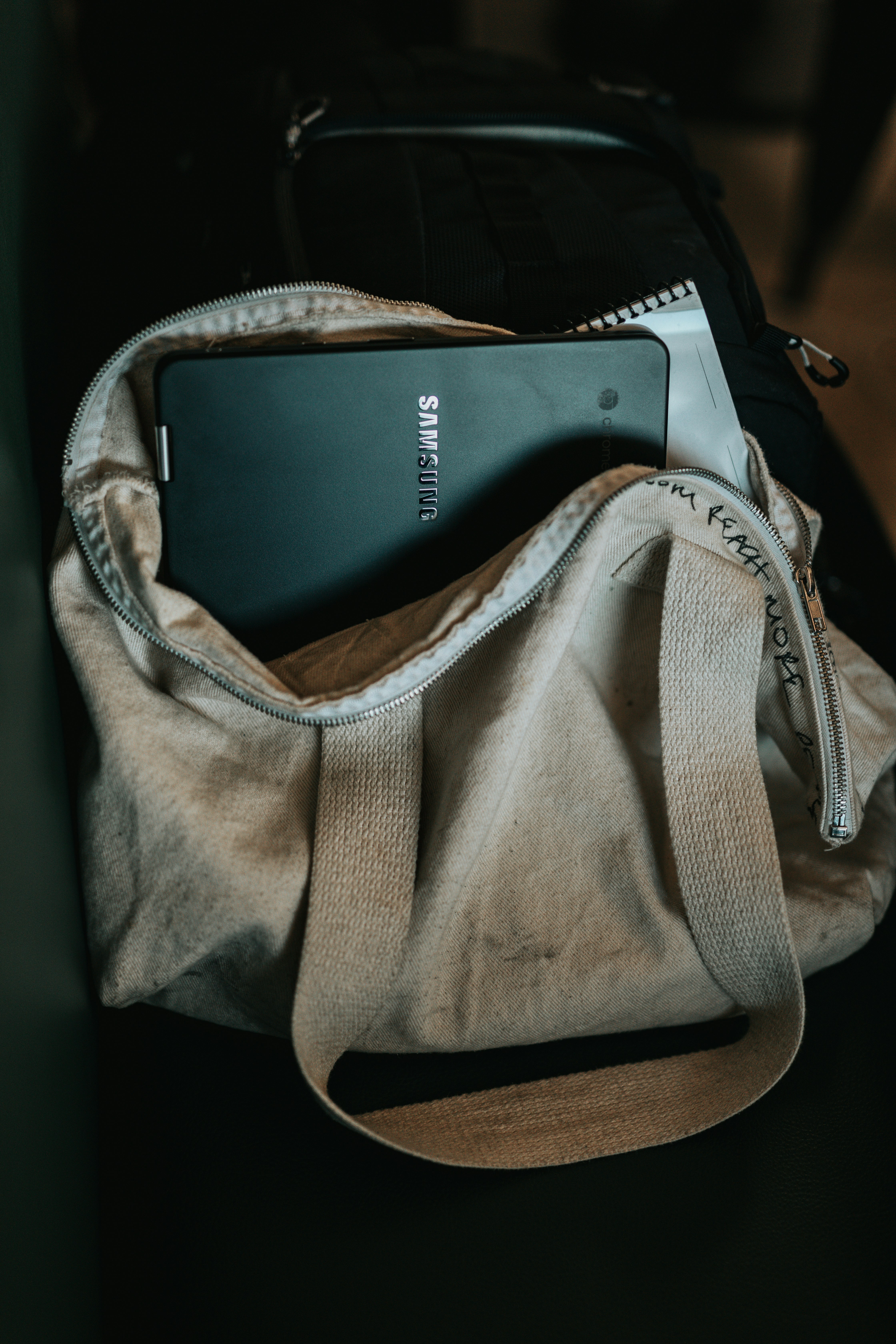 笔记本电脑,宏碁,谷歌Chromebook,包,公文包,挎包,包装,准备,遥控,工作,女人,女人,床,卧室,手,地板,电脑,谷歌,谷歌