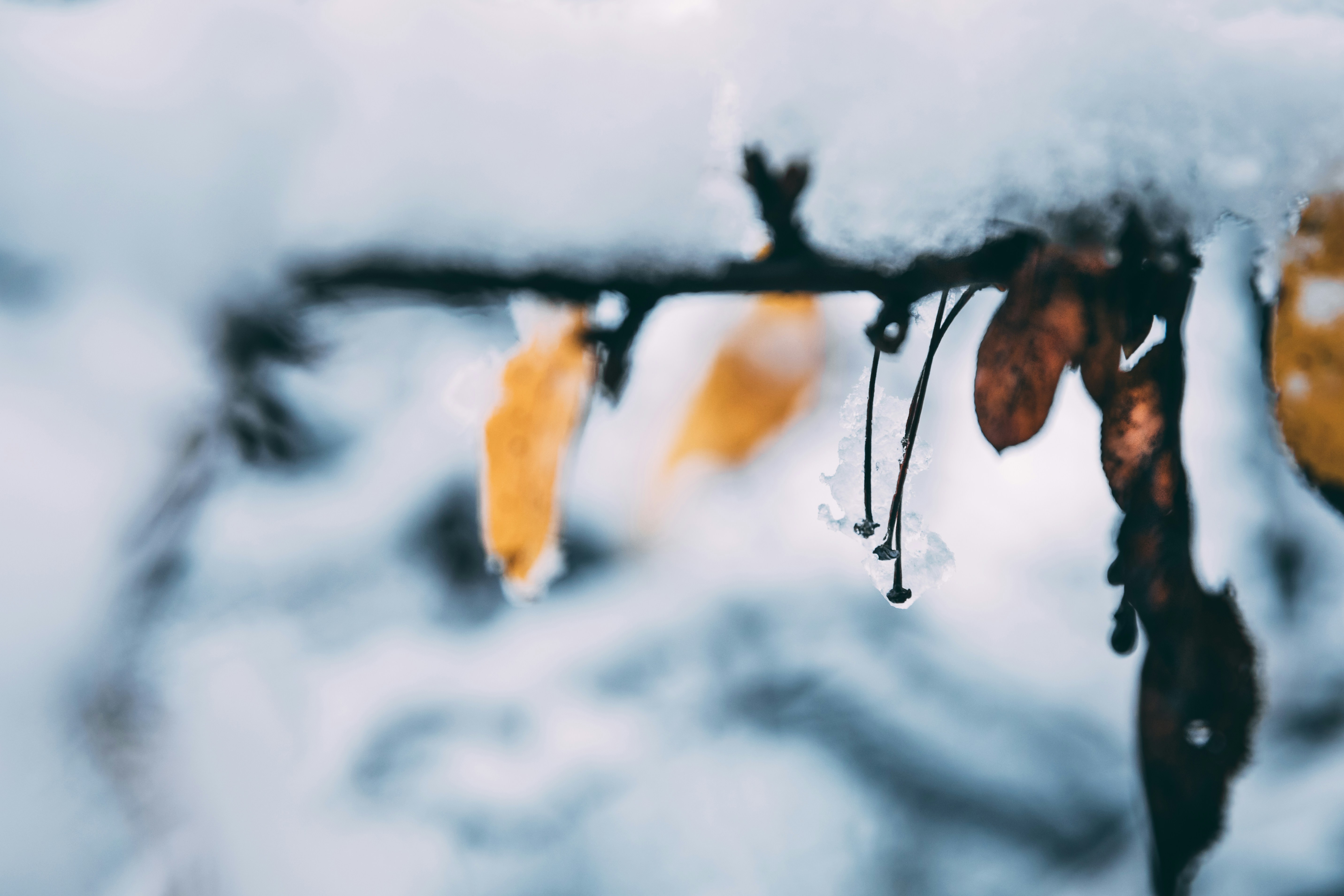 叶、叶、枝、树、冰、雪、霜、冬、寒意、美、自然、瞬间、凉、冷、冻、白、雪、秋、过、叶