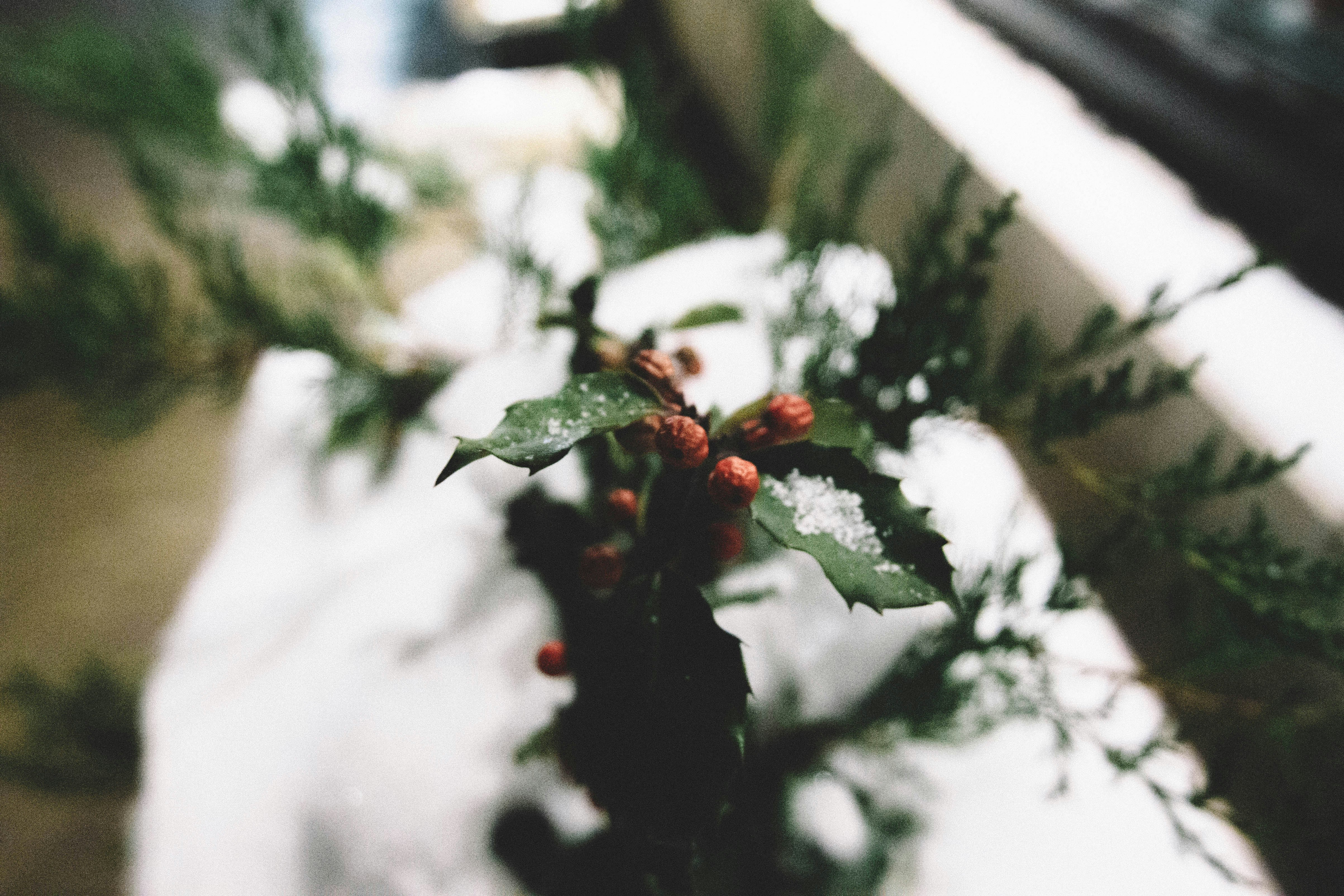叶、叶、雪、霜、冻、季节、自然、街道摄影、街道、节日、冬青、圣诞节、花、植物、浆果、右、绿、白