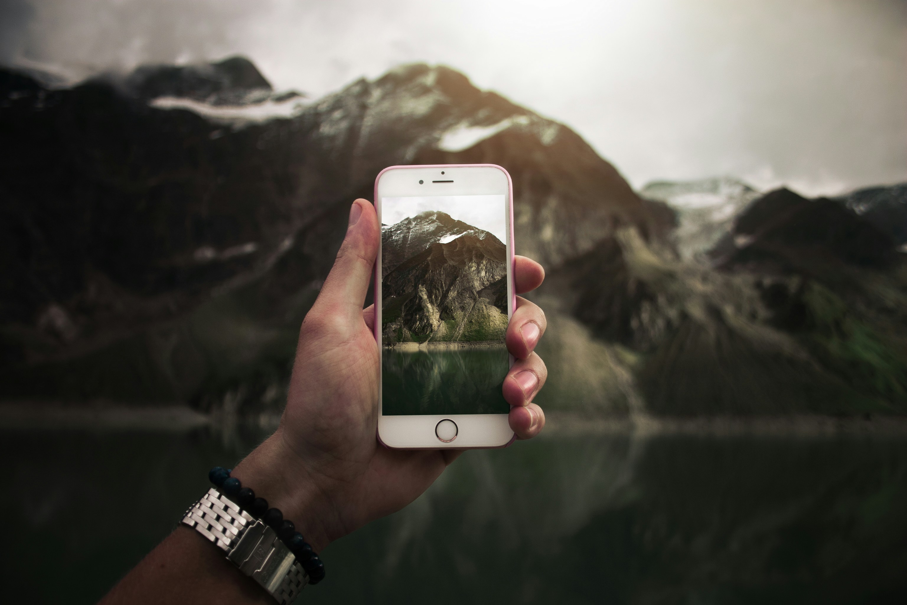 电话、图片、iphone、手持、手、表、山、山、雪、云、绿、水、苔藓、人、白种人、科技、壁纸、节日、爱情、阳光