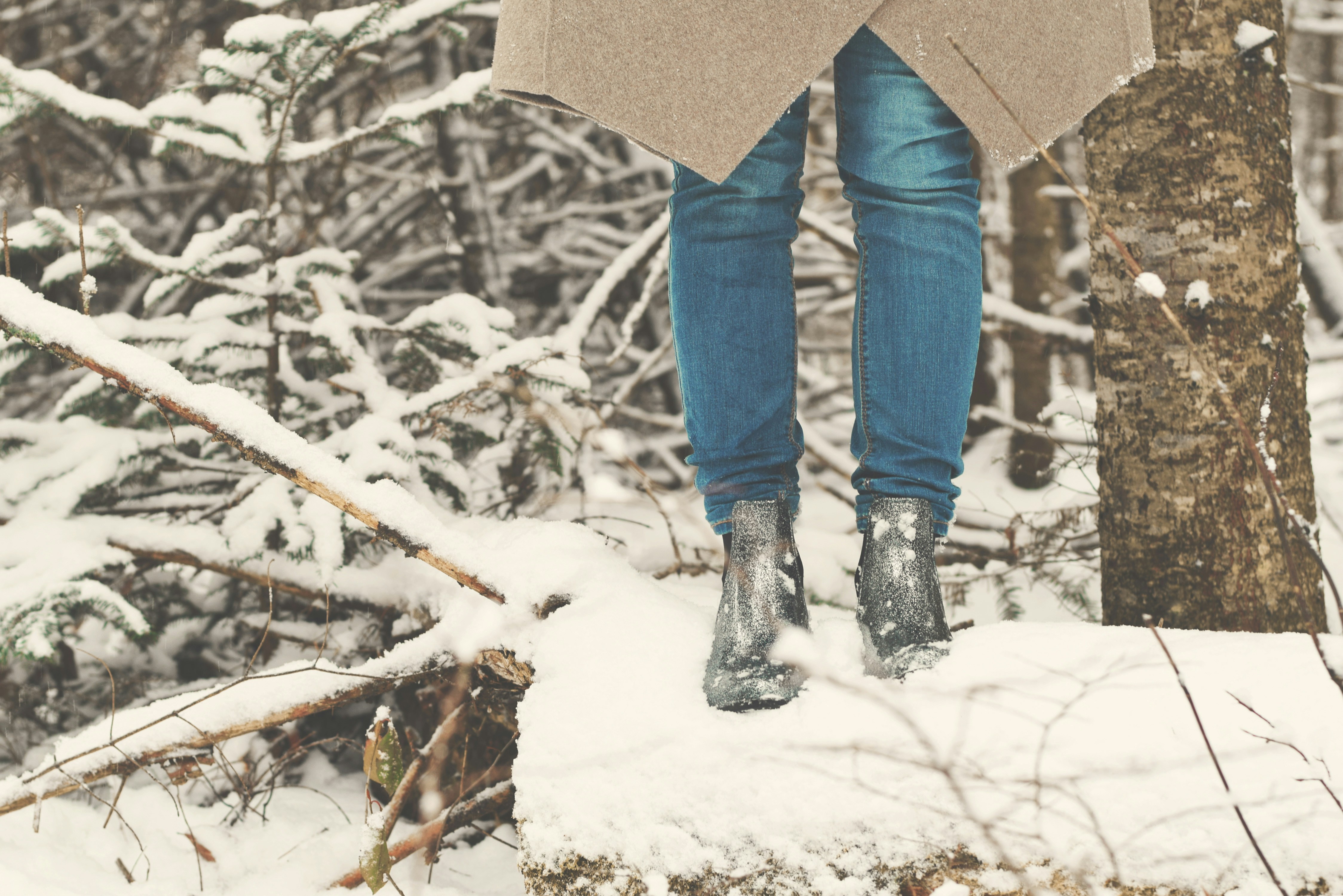 雪,腿,林地,森林,树,木材,假日,雪,靴子,外套