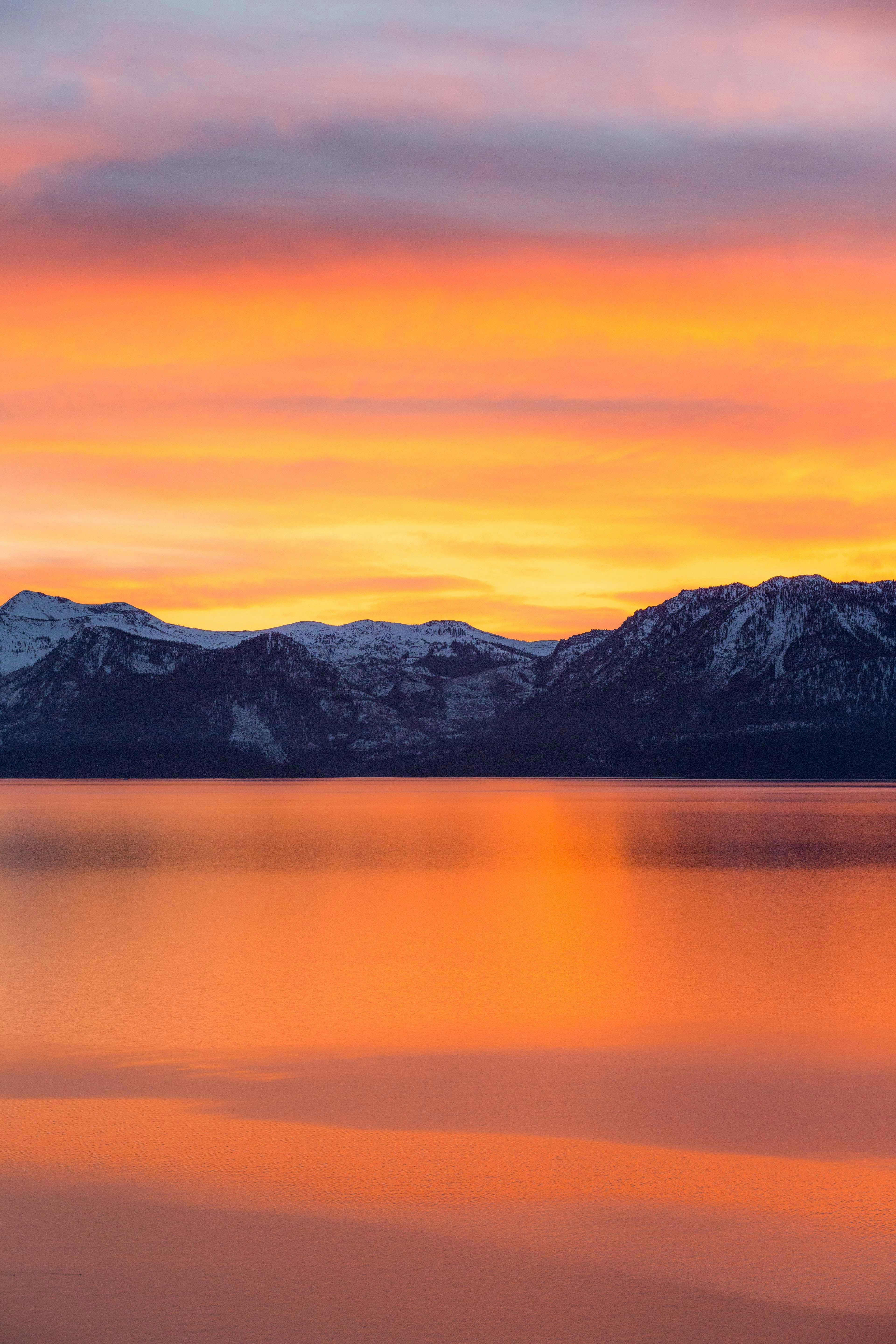 日落,日出,橙色,风景,山,雪,冬天,湖,水,海,海,反射,云,颜色,蓝色,紫色,粉色,佳能美国,团队佳能,佳能,佳能