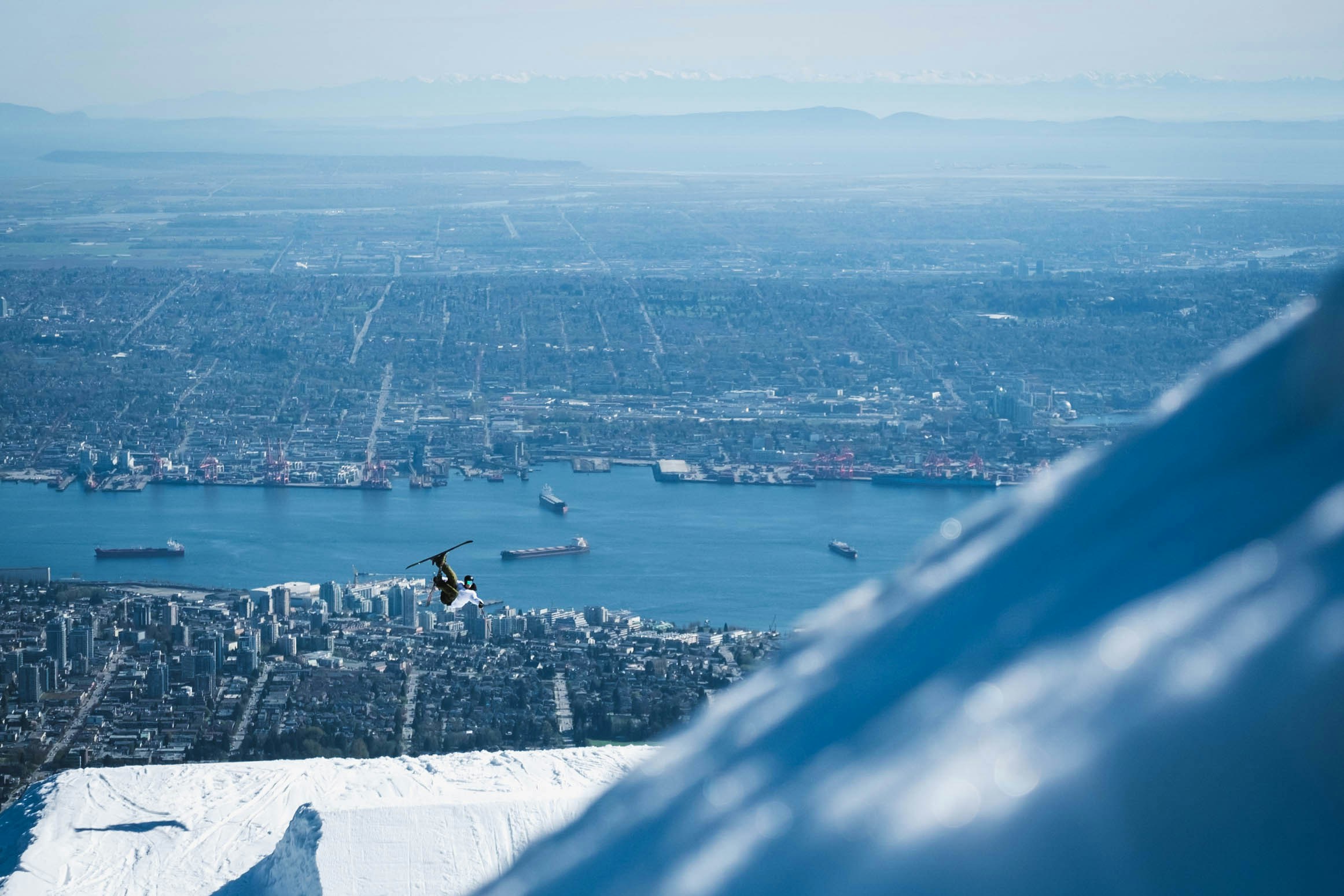 鸟瞰,直升机,城市,河流,风景,屋顶,阴影,船,船,水,跳跃,自由泳,滑雪,松鸡山,蓝,雪,斜坡,空中,空气,花招