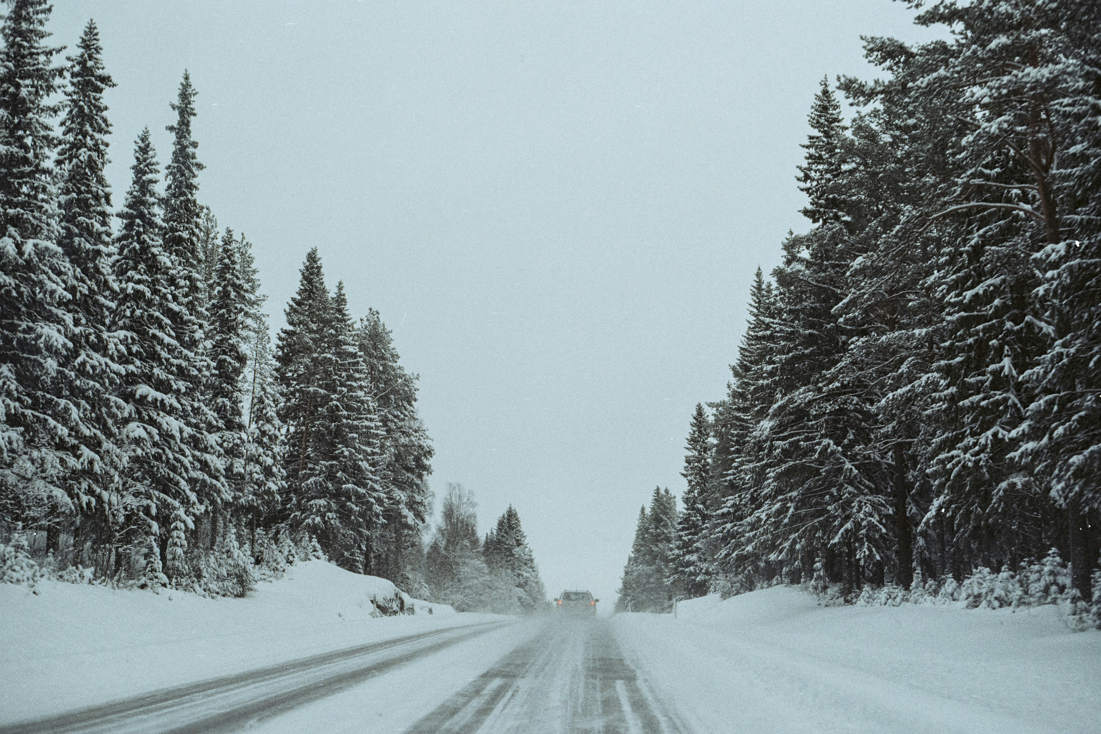 汽车、雪、道路、冬天、白色、树木、森林、瑞典、旅行、旅行、冒险、驾驶、北方、松树、汽车追逐、逃生、雪树、雪路