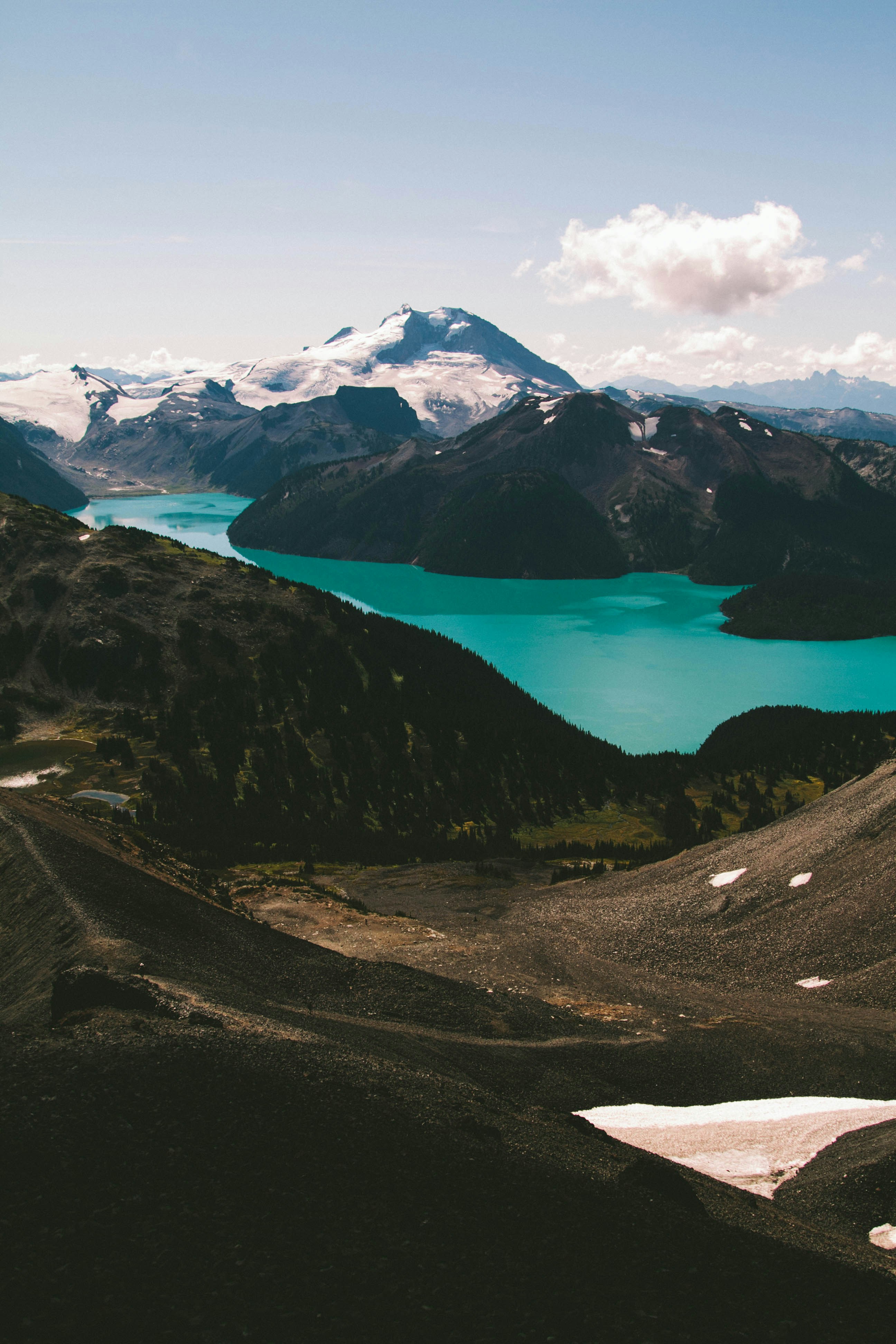 山脉、山脉、边缘、水、翡翠、蓝色、白色、雪、阳光、阴影、小径、湖泊、哨子、荒野、野生、黑色的象牙、加拿大、户外、冒险