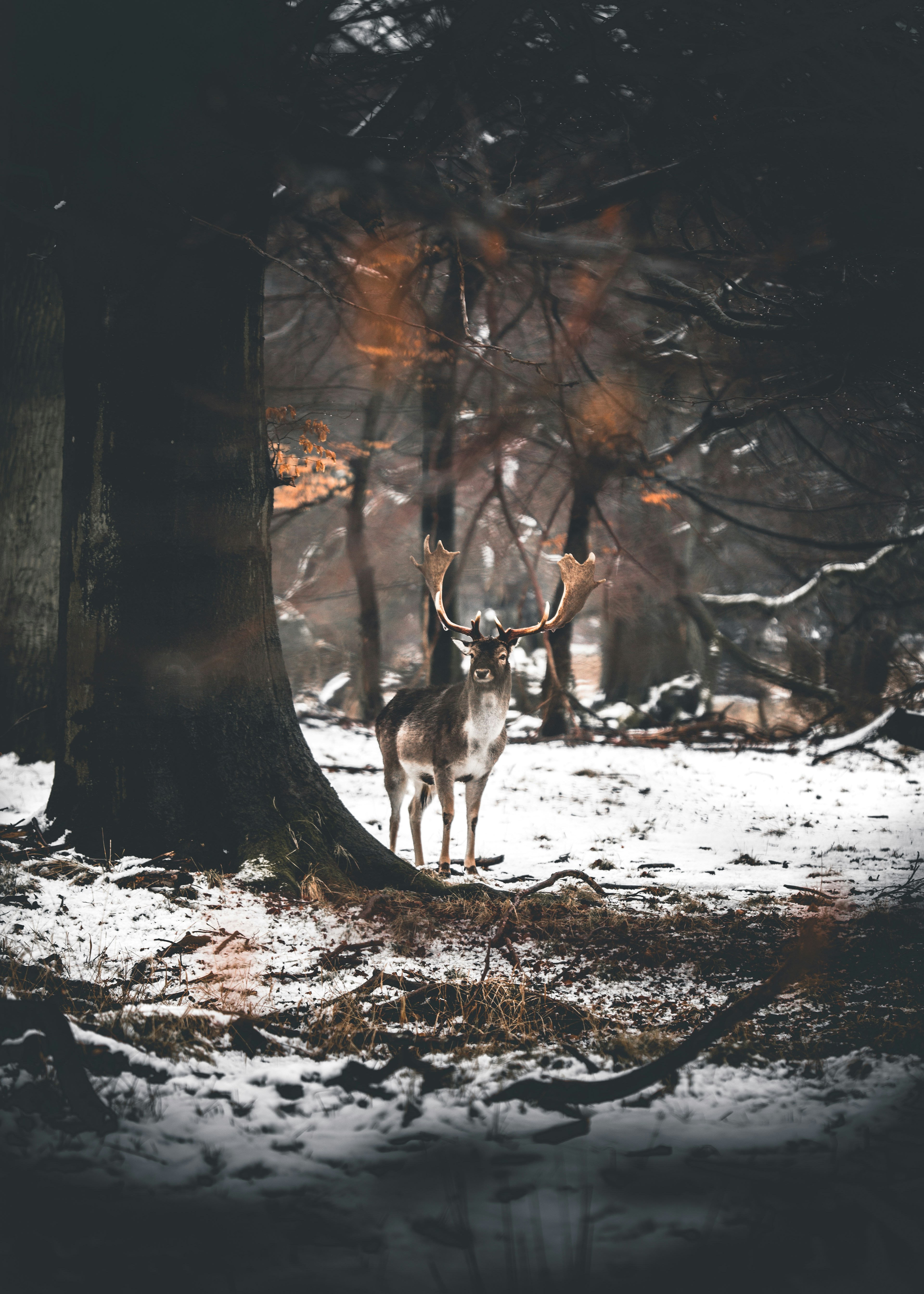 冬、雪、动物、野生、森林、树叶、花园、公园、喜怒无常、色调、自然、鹿、树、野生动物、野生动物、探险、窗户、雪盖