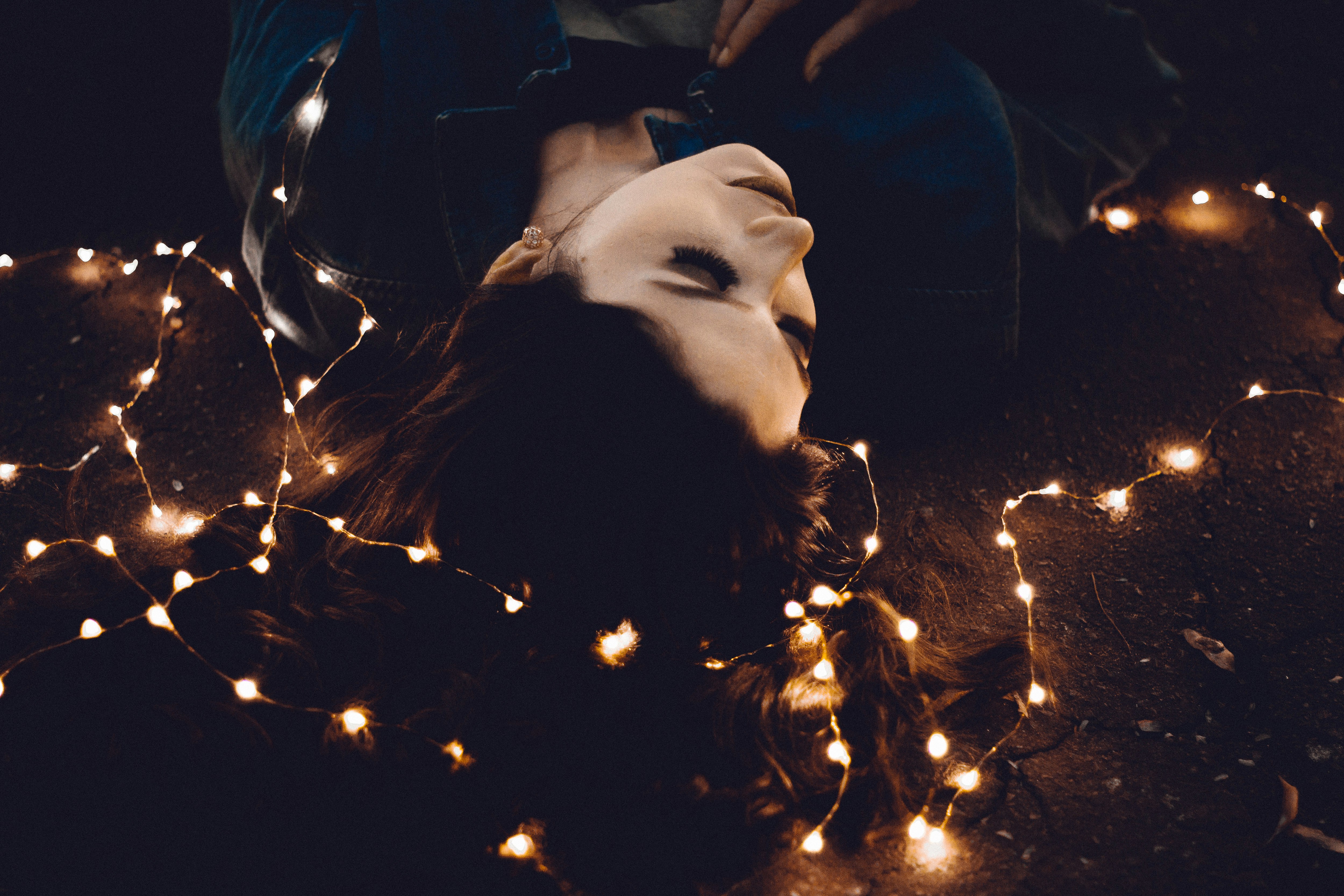 在昏暗的房间里拍摄黑色口红和鼻子刺穿的女人的照片
