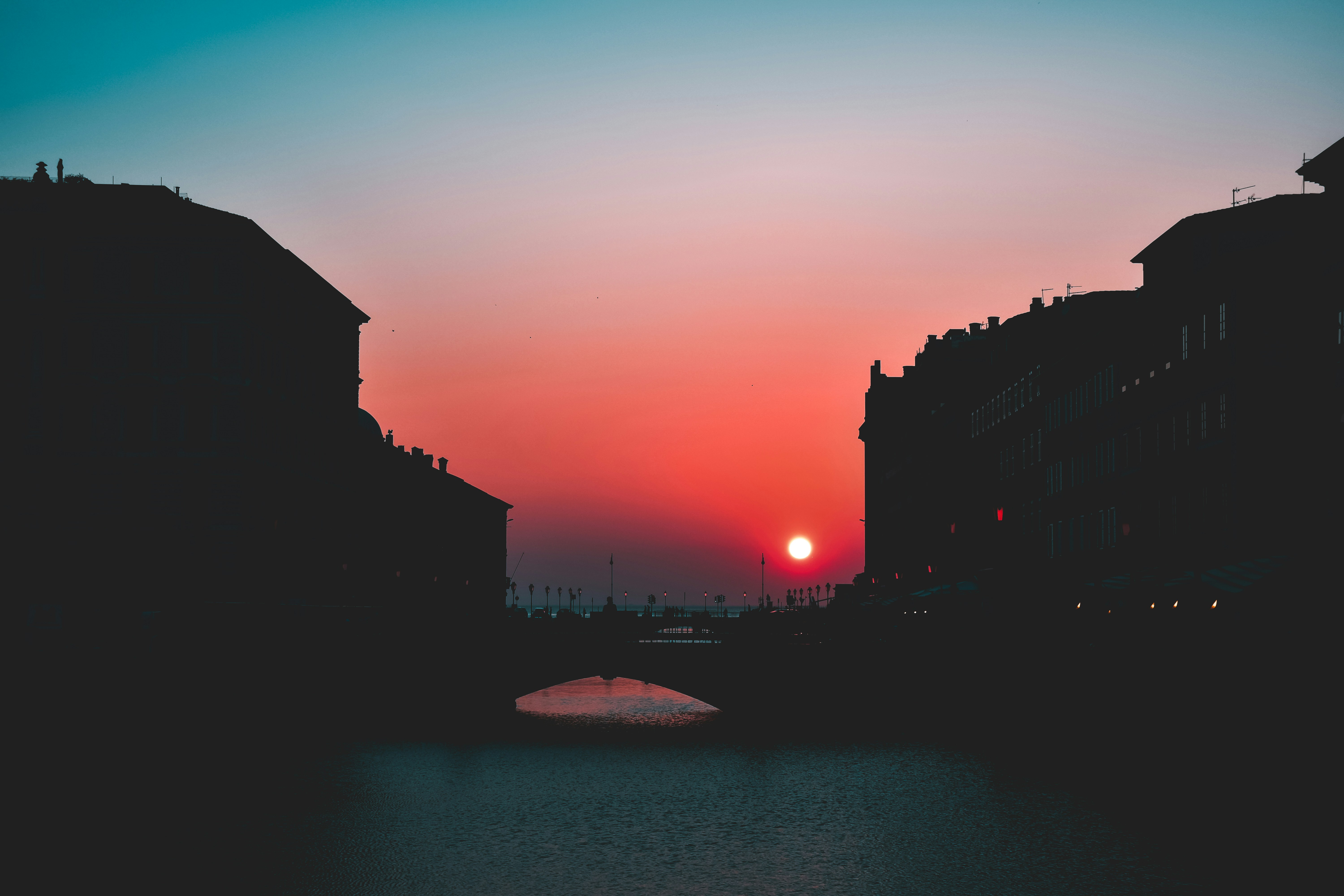 太阳,天空,桥梁,建筑,城市,河流,轮廓,黑暗,城市,日落,黄昏,红色,水,喜怒无常,自然,秋天,秋天,机器人壁纸,戏剧性的天空,背景