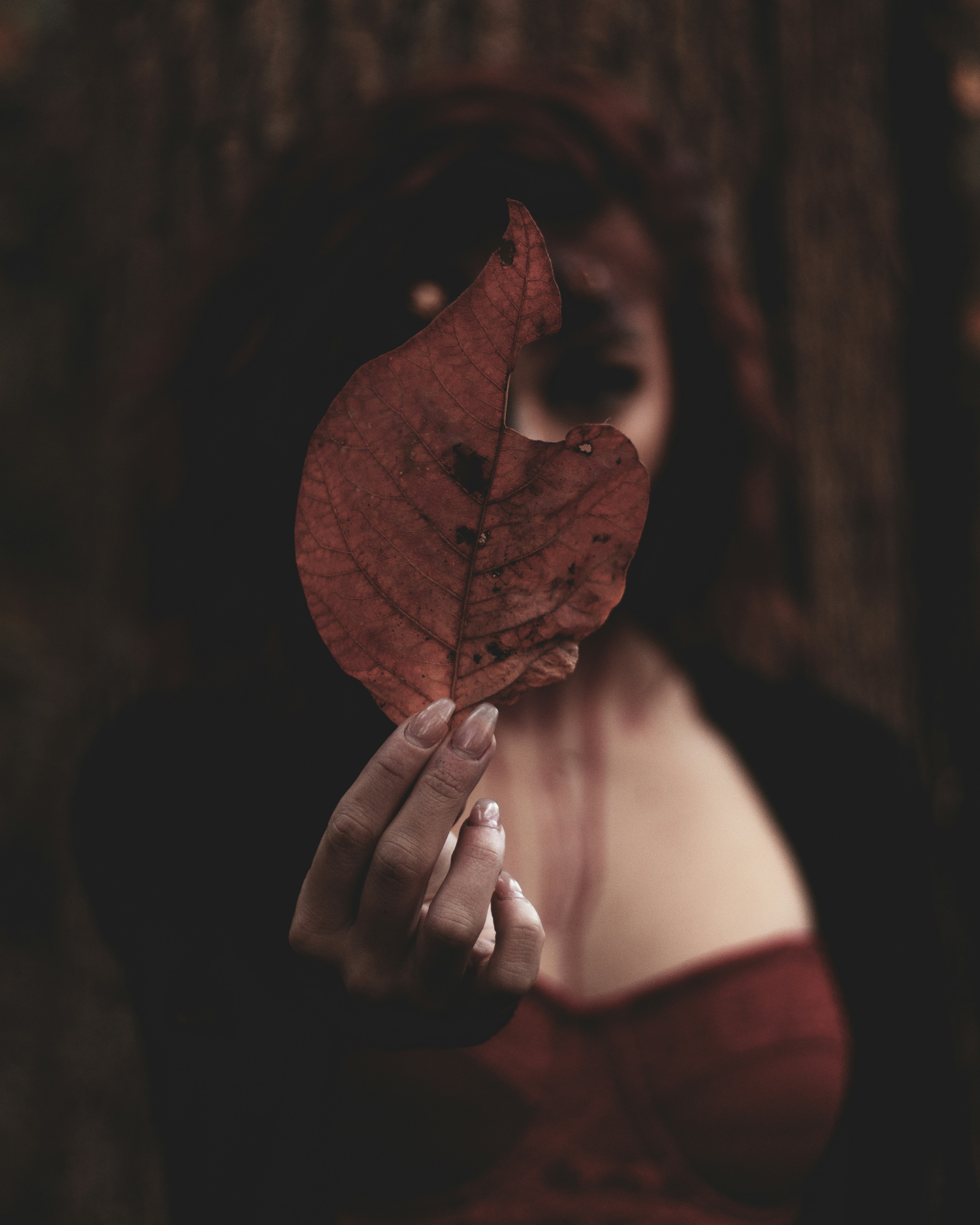 可怕的,喜怒无常的,黑暗的,堕落的,画像,树,叶,叶,福雷斯特