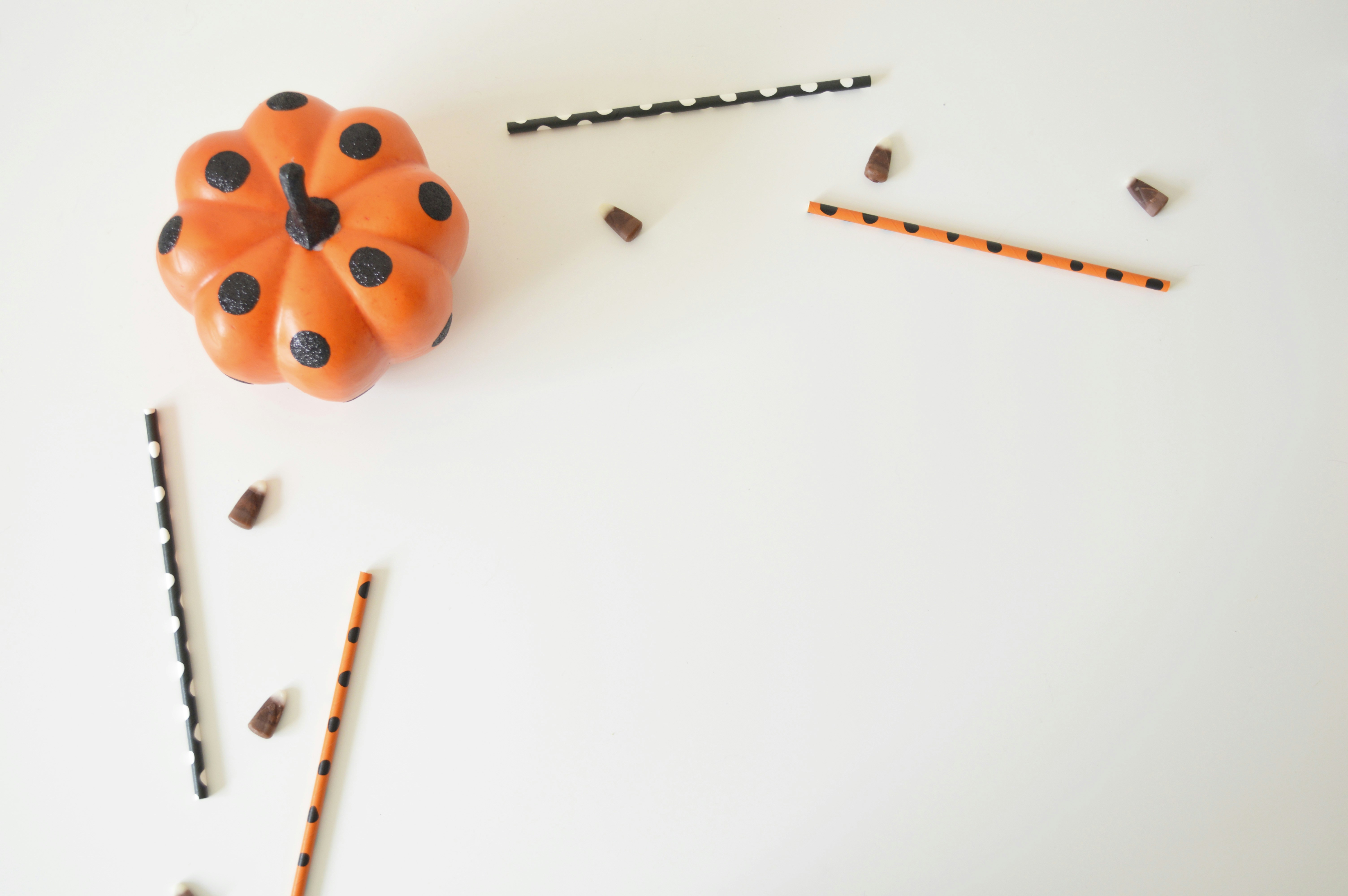 黑色桌子上的橙色和黑色圆点南瓜玩具