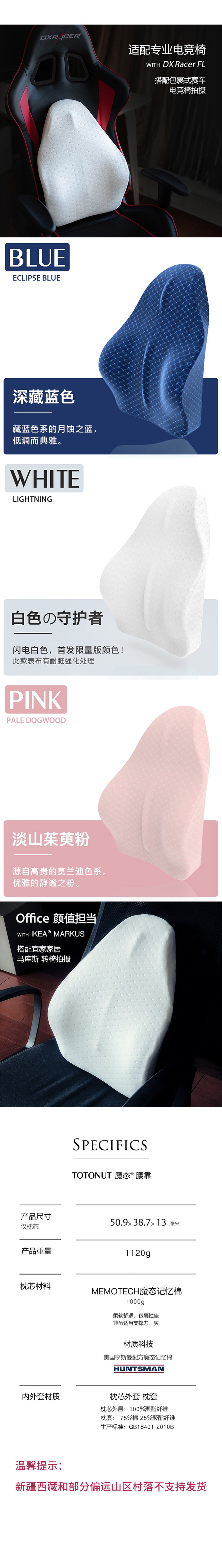 TOTONUT魔态护腰枕 记忆棉 办公室腰靠垫 汽车座椅 电竞椅靠背垫