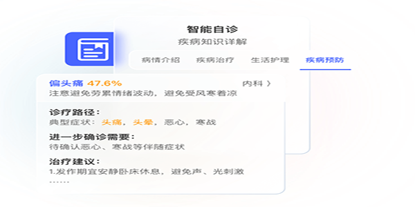 自诊报告提供疾病知识详解,包括疾病介绍、疾病治疗,生活护理和疾病预防等权威内容